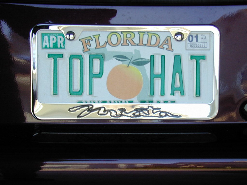 No, this is not my personalized license plate. I just felt a bit uncomfortable publishing my real license plate for the world to see (can't see why this is a problem, call me paranoid :) So, a little digital magic with PaintShop Pro and voila! TOP HAT. Why TOP HAT? Because those where the letters I had to work with my cut and paste, and I was too lazy to create new letters from scratch.